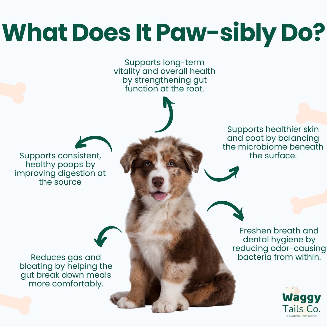 Our mission is simple, create natural, science-backed gut support that actually tastes like a treat. Because when you support their gut, you support their comfort, digestion, immunity, energy, mood, and overall happiness.
